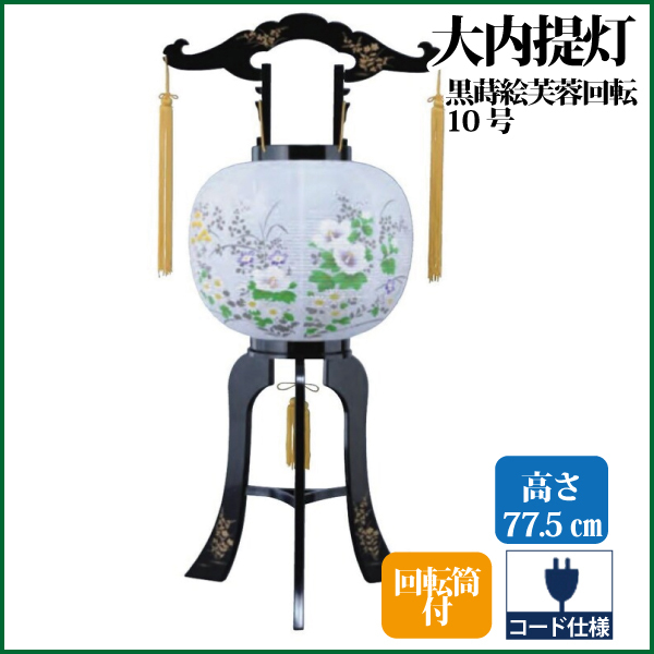 盆提灯 盆ちょうちん 黒蒔絵芙蓉萩回転10号 大内行灯 提灯 お盆 新盆 初盆 お盆用品 仏具
