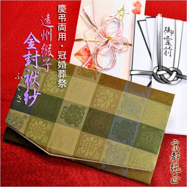 国産京都【金封ふくさ:遠州緞子】慶弔両用タイプ・冠婚葬祭 ネコポス無料