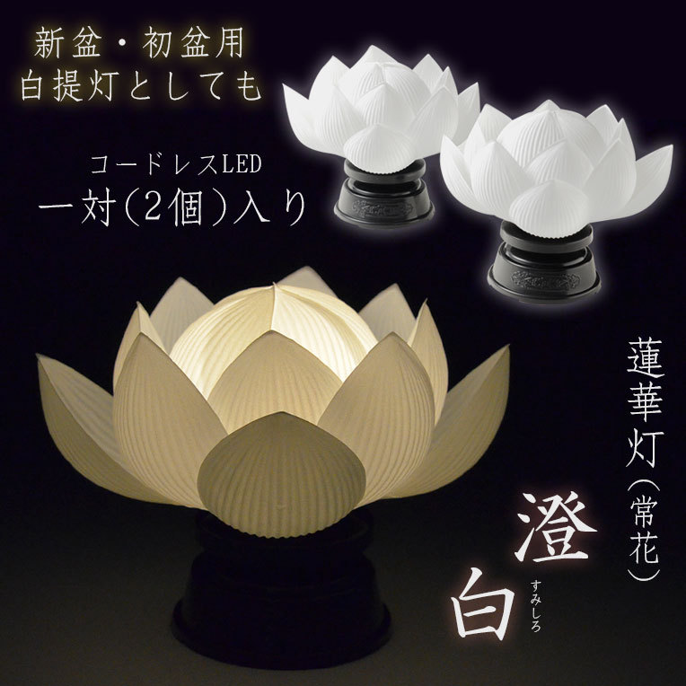 清楚な白地の花びらが美しいコンパクトな蓮華灯は