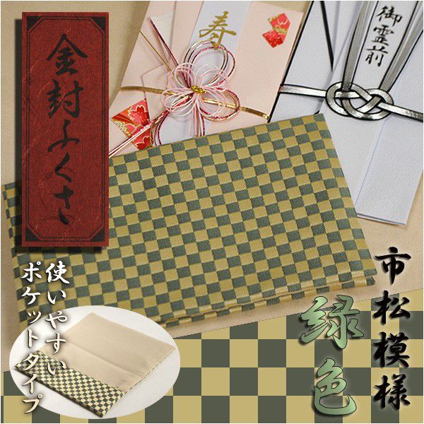 【市松模様 金封ふくさ:緑色】袱紗・冠婚葬祭 ネコポス送料無料