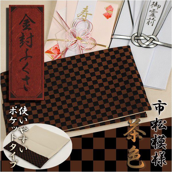 【市松模様 金封ふくさ:茶色】袱紗・冠婚葬祭 ネコポス送料無料