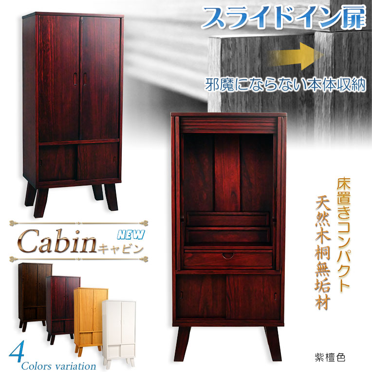 家具調仏壇【モダン仏壇 新キャビン:桐無垢材 省スペース型100cm・スライドイン扉 一体型33号 紫檀色】