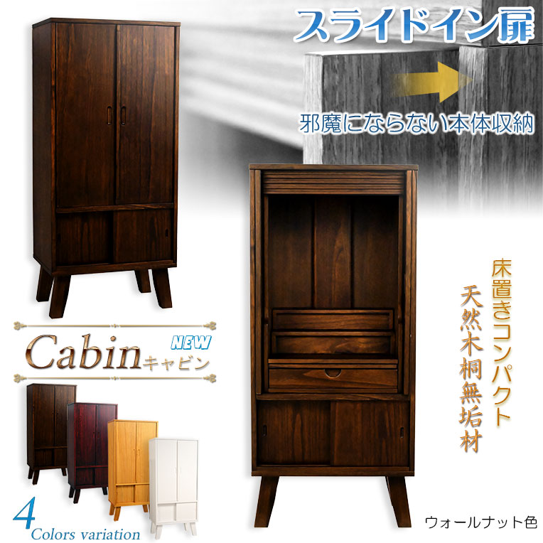 家具調仏壇【モダン仏壇 新キャビン:桐無垢材 省スペース型100cm・スライドイン扉 一体型33号 ウォールナット色】
