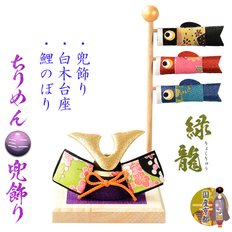◆兜に白木の敷台、鯉のぼりが付いた国産京都のミニ兜セット