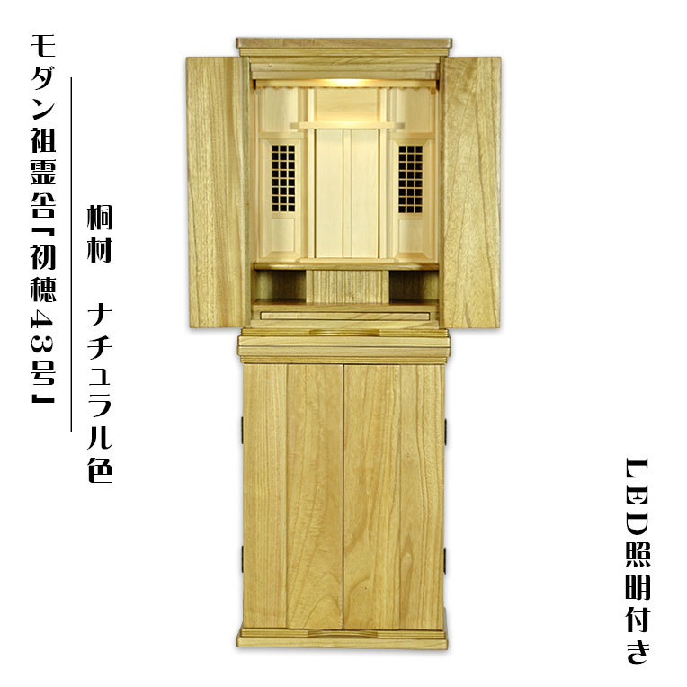 LED照明付き【モダン祖霊舎:初穂(はつほ)・天然木総桐材 43号・ナチュラル】送料無料