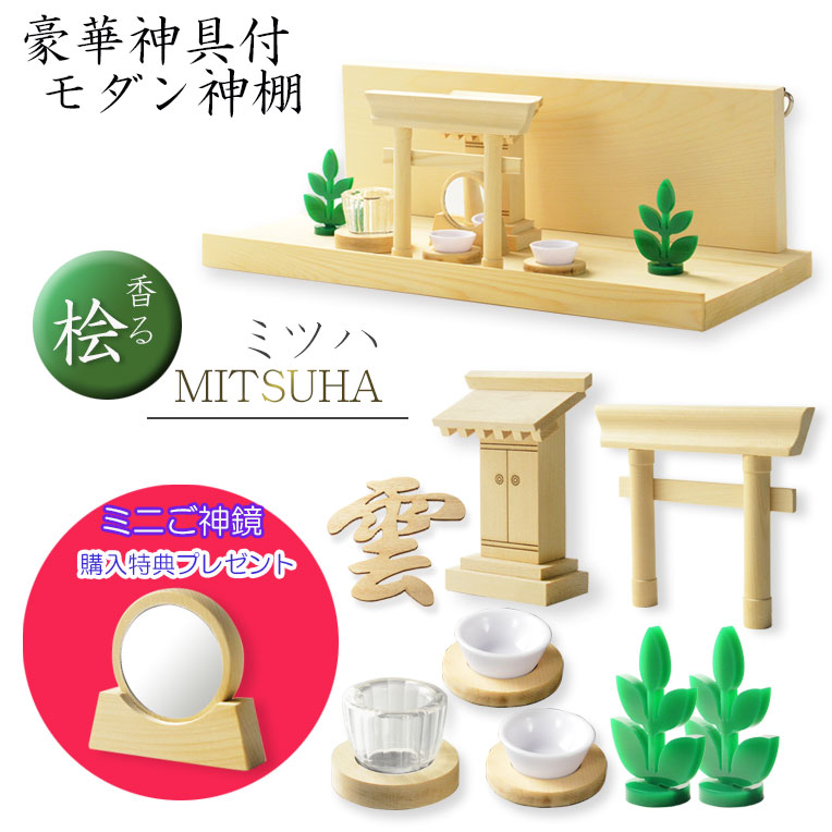 ■商品内容:神棚本体・ご神鏡・鳥居・祠・榊一対(2個)雲文字