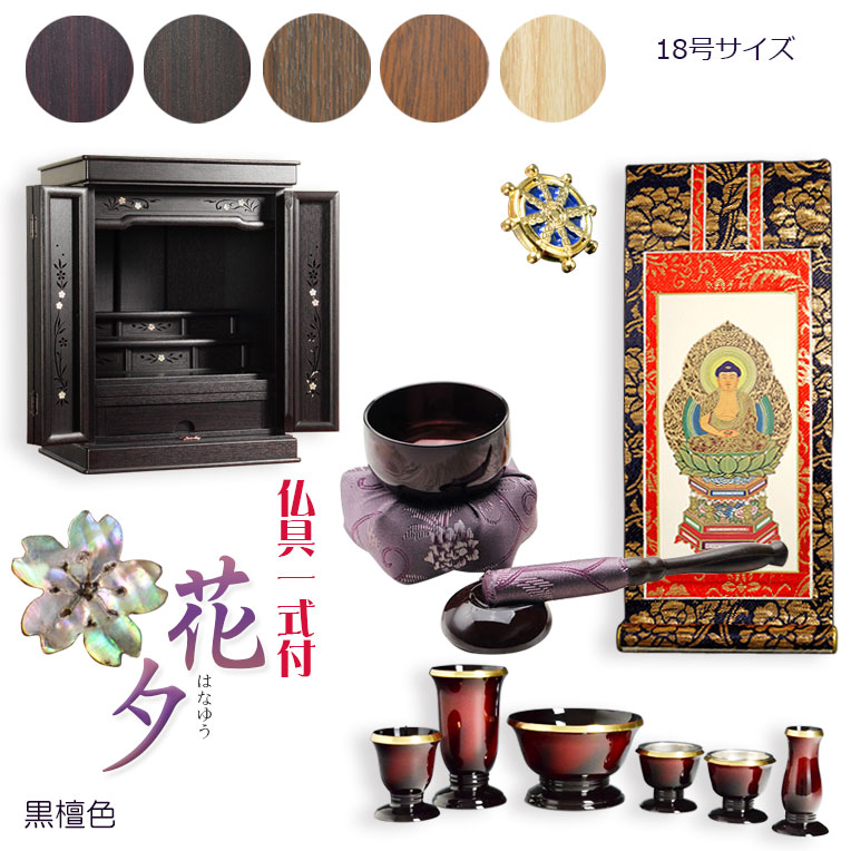 黒檀色 モダン仏壇【伝統型仏壇:天然貝・螺鈿細工 和モダン・花夕(はなゆう)仏具一式付】