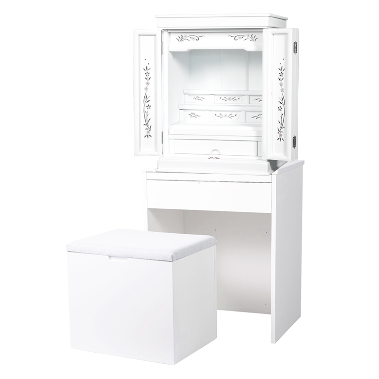 ホワイト色 仏壇+仏壇台【伝統型仏壇:天然貝・螺鈿細工 和モダン・花夕(はなゆう)+仏壇台ブルーム】