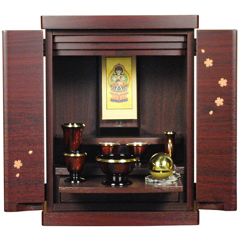 (1月下旬入荷予定)仏具付き・ミニモダン仏壇【桜都(おと)15号 紫檀色】送料無料