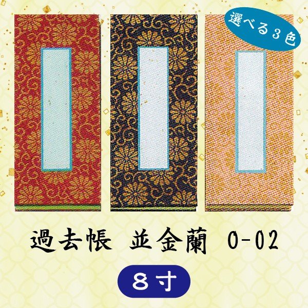 【選べる3色】過去帳 並金襴 J-15 横線付 8寸 (24cm)