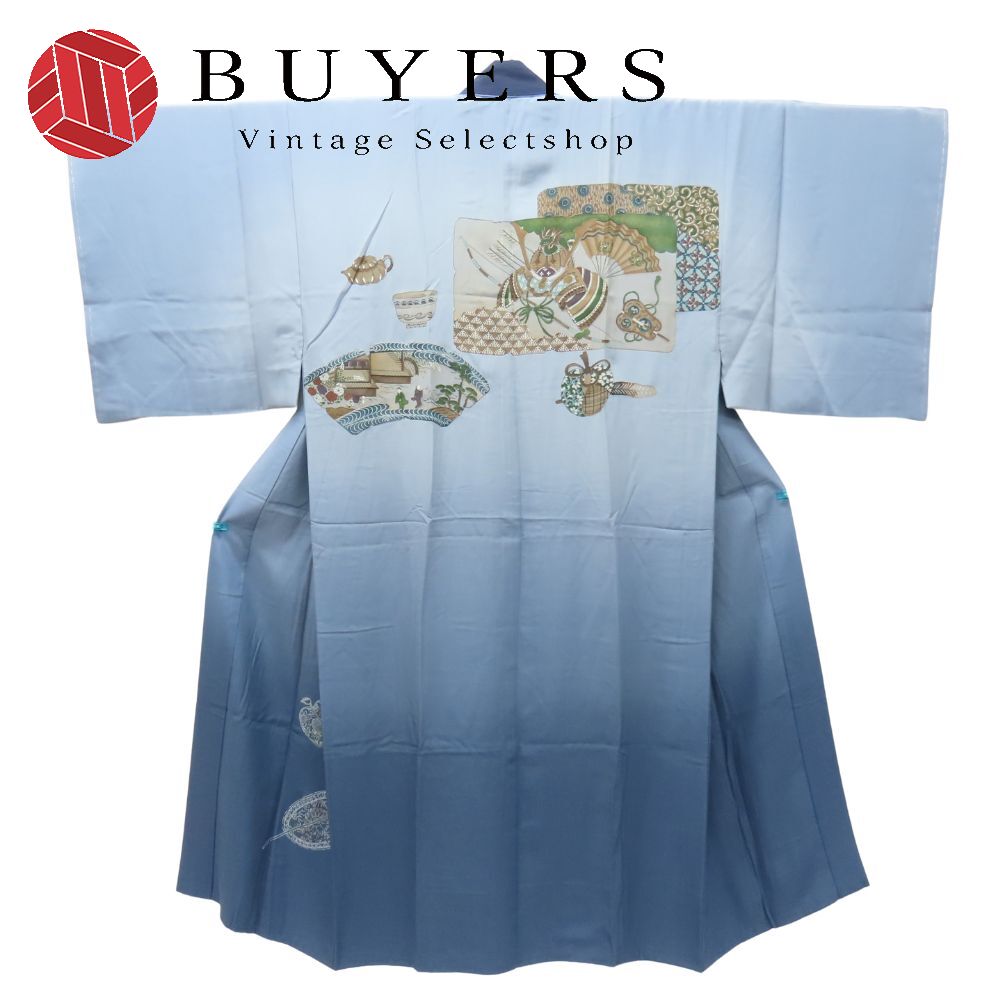 中古 襦袢 正絹 ブルーグレー 兜 和装 呉服 和服 きもの メンズ 男性