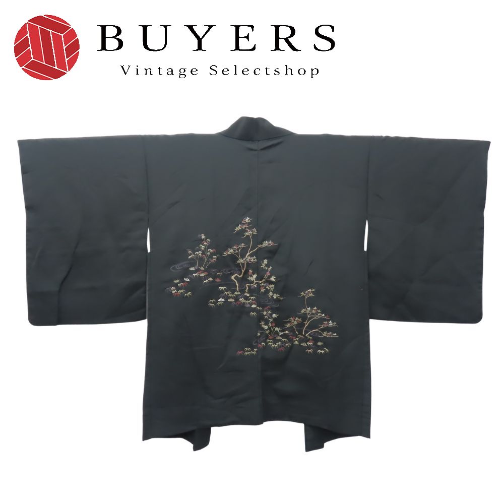 中古 羽織 正絹 黒 ブラック 羽織紐付き おしゃれ 和装 呉服 和服 きもの レディース 女性