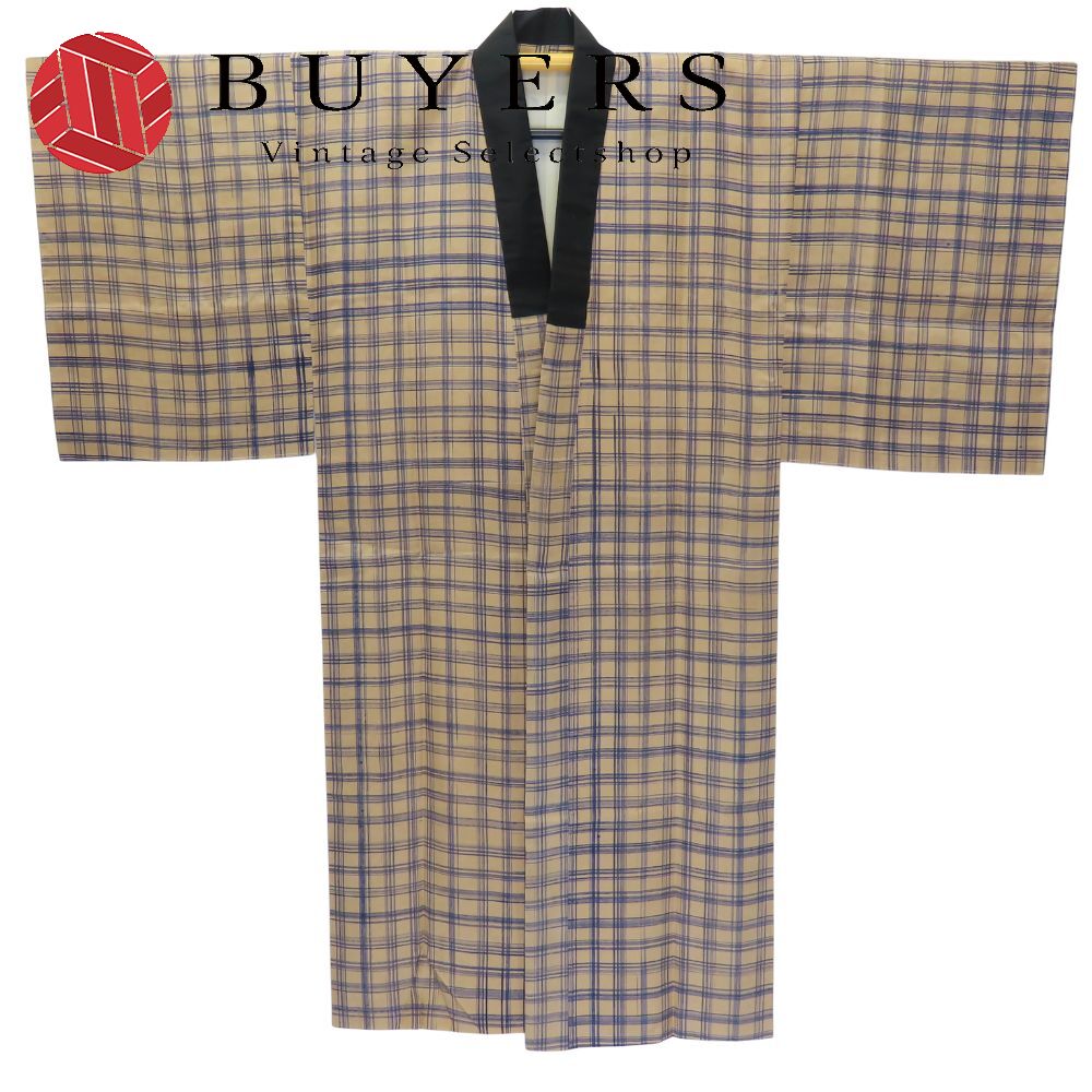 | 品名 | 【中古】 襦袢 正絹 ベージュ ネイビー おしゃれ 格子 メンズ 男性