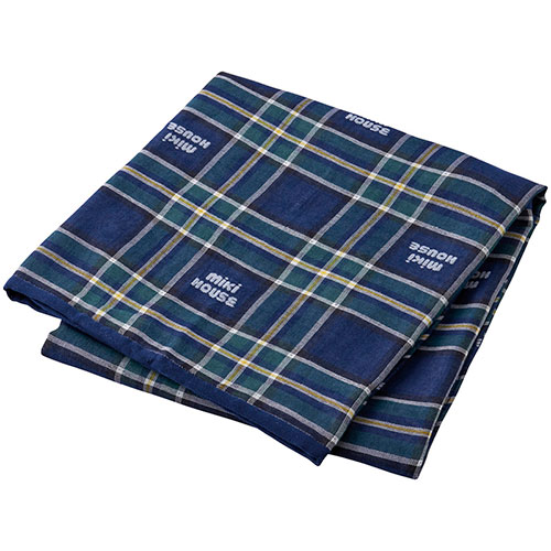 ミキハウスチェックのマルチケットです。ガーゼ素材で軽くて、薄いので、かけたり、引いたり巻いたり、さまざまなシーンで活用できる便利なアイテム。