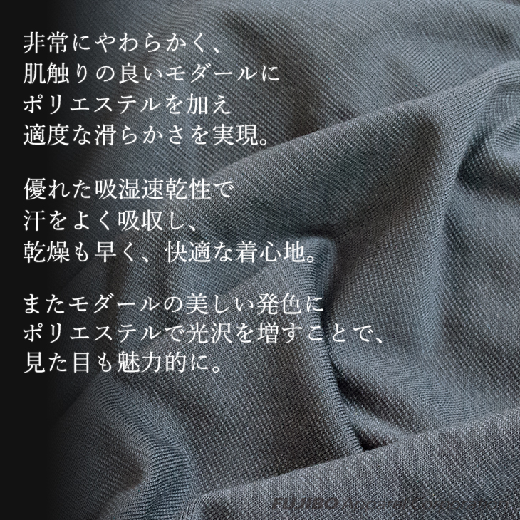 やわらかく・ソフトなレーヨン(モダール)素材を使っており、まるでシルクのような滑らかな手触りで、上質な光沢感があり、吸湿性に優れ、高級感ある仕上がりです。