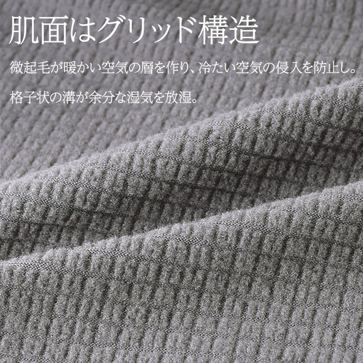 GRID構造は体とインナーの間に暖かい空気の層を形成し保温性を最大化。