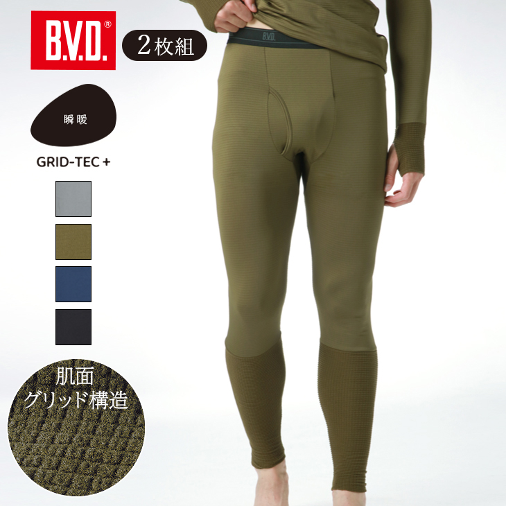 2枚組 BVD 瞬暖GRID-TEC+ グリッド構造 裏起毛 ひざ下二重保温 ロングスパッツ タイツ M L LL あったかインナー 防寒 bvd 抗菌防臭 メンズ 下着 冬用 釣り 爆買