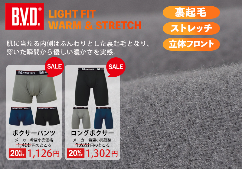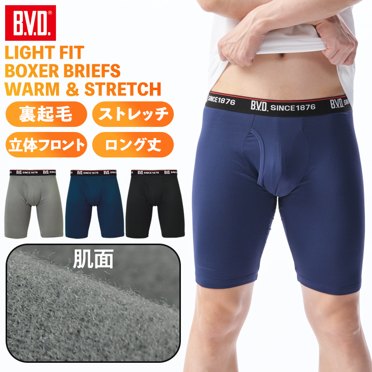 裏起毛 ロングボクサーパンツ BVD 立体フロント ライトフィット メンズ アンダーウェア あったか 防寒 bvd 肌着 インナー 前開き 爆買