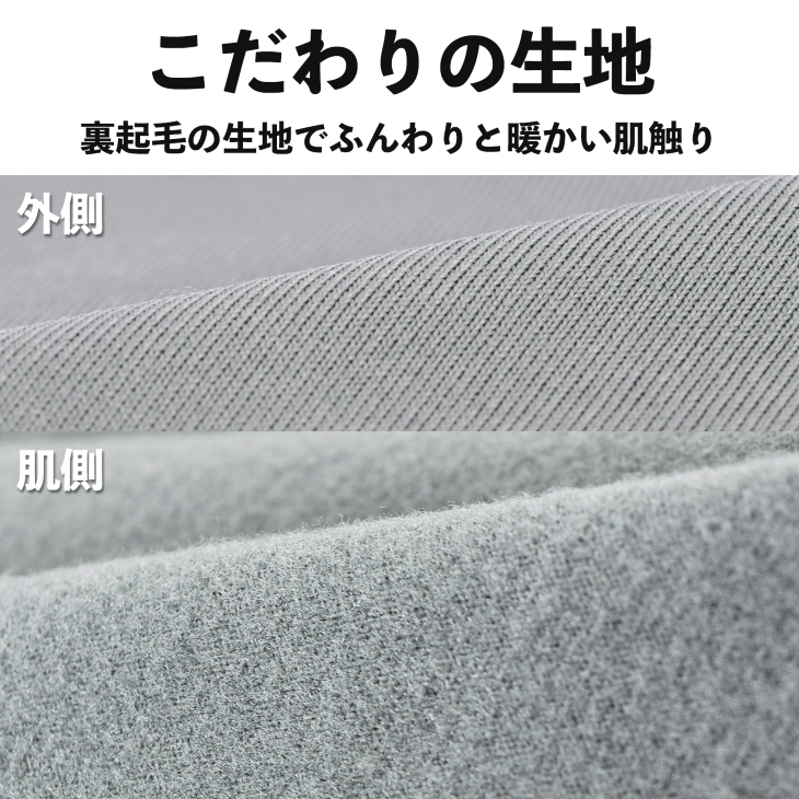 『保温性』肌に当たる内側はふんわりとした裏起毛になり、穿いた瞬間から優しい暖かさを実感。