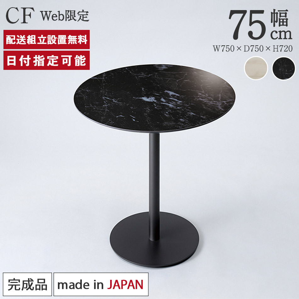 Web限定 セラミック ラウンドテーブル 幅75cm パモウナ CF 奥行75cm Pamouna ホワイト ブラック 耐熱 防汚 カフェテーブル 2人掛け 高さ72cm 完成品 高級感