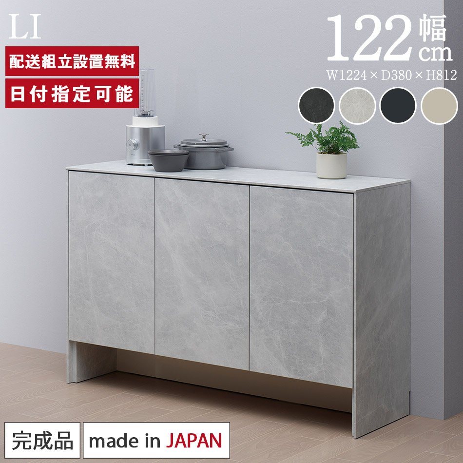 パモウナ キャビネット 幅120cm 開き扉 LI ブラック グレー ベージュ ハイマット 石目柄 完成品 収納 引出 国産 おしゃれ 高級感 ベーシック モダン 送料無料