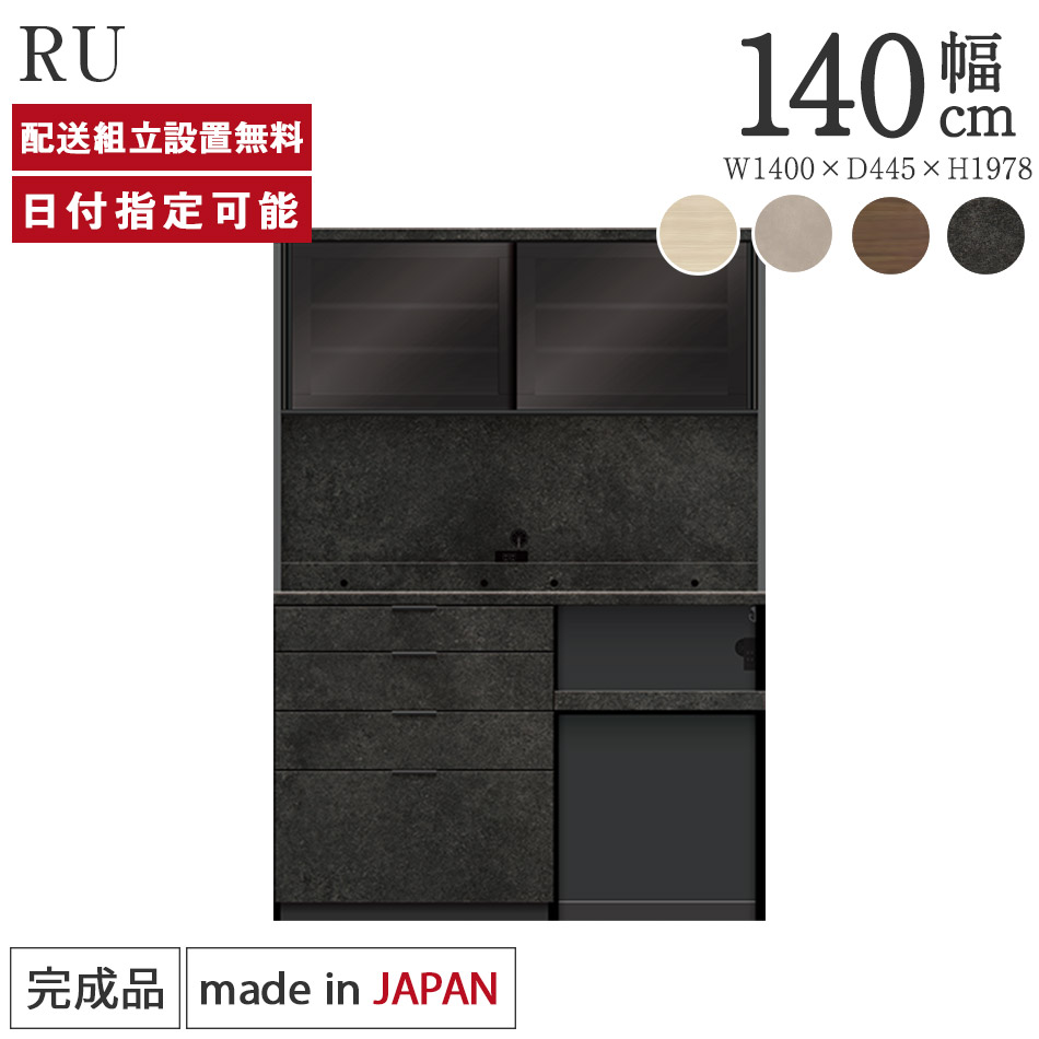パモウナ 食器棚 幅140cm 奥行45cm 高さ198cm RU 完成品 棚 国産 キッチンボード ダイニングボード カップボード 引き戸 レンジボード レンジ台 送料無料