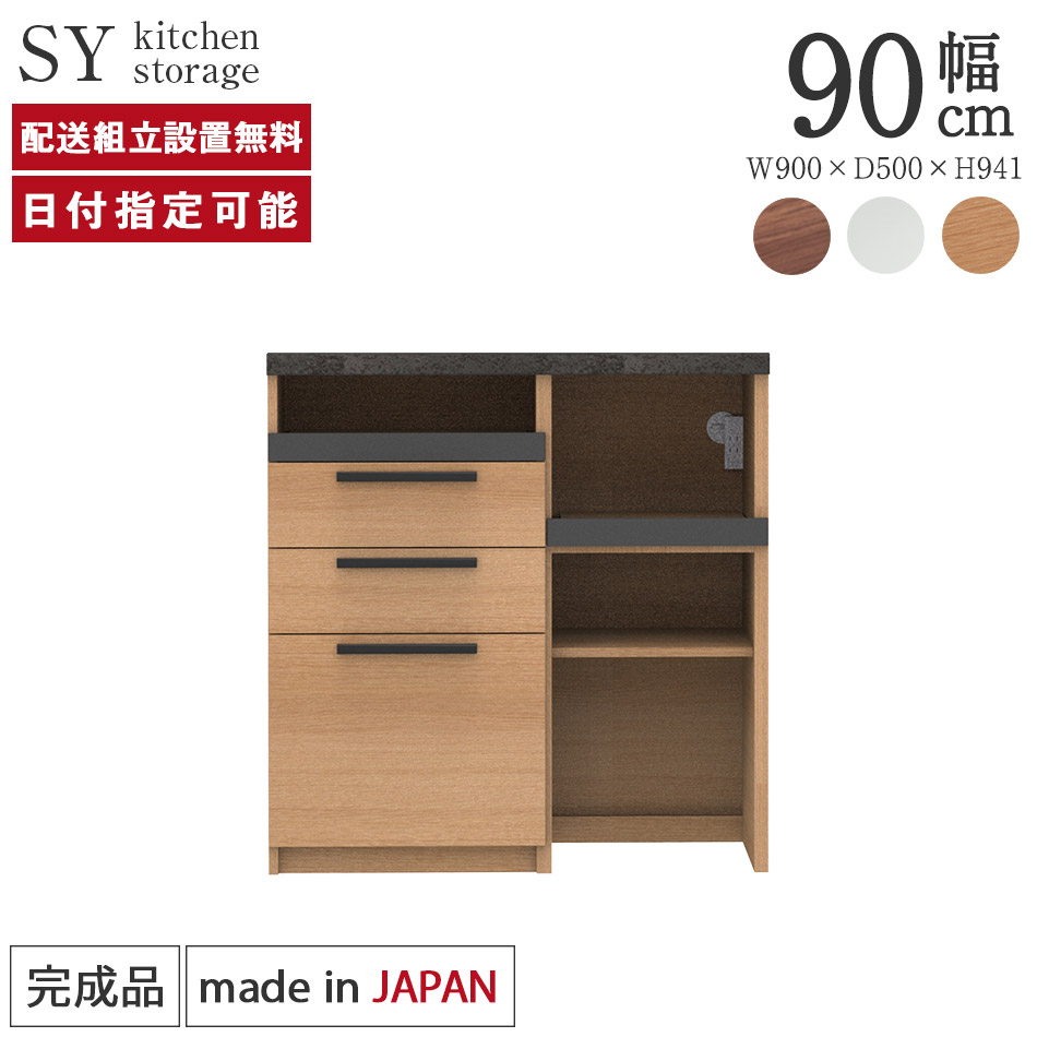 パモウナ 食器棚 スリム 幅90cm 奥行50cm 高さ94cm SY 下台販売 完成品 キッチンボード ダイニングボード カップボード キッチンカウンター 送料無料 収納