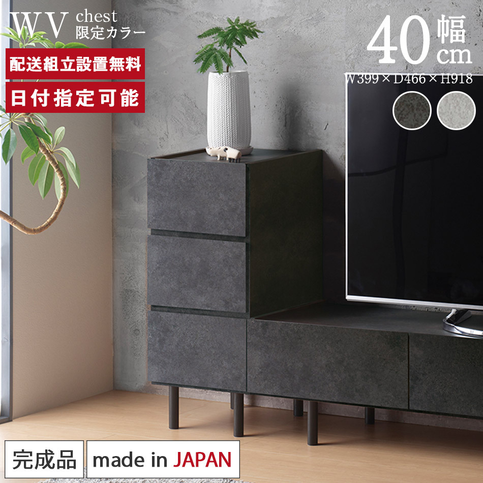 Web限定カラー パモウナ チェスト 幅40cm 3段 セラミック柄 石目柄 ストーン調 WV 完成品 脚付 収納 国産 おしゃれ 高級感 サイドチェスト モダン 送料無料