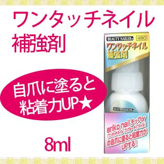 〜ワンタッチネイル補強剤について〜<ご使用方法>1、手を清潔にしてから、自爪にワンタッチネイル補強剤を塗ります。* 約20〜30秒で乾きます。2、補強剤が乾いてから、ワンタッチネイル・プリグルータイプネイル(粘着剤付きネイル)を装着します。3、補強剤を塗りますと、粘着力がUPします。* 薄く均等に塗ると、さらに粘着力がUPします。< はずし方>●ネイルを装着したまま、ぬるま湯に浸して、ゆっくり動かしながらとります。(ワンタッチネイルはぬるま湯に浸して10〜15分浸し、ゆっくり動かしながら取りますが、補強剤を使用している場合、比較的早く取れます。)●自爪に残ってしまった補強剤は、消毒用アルコールを使うと、きれいにふき取れます。<再度ご使用の場合 >1、ぬるま湯に浸してはずした後、よく乾燥させます。2、乾燥後、粘着剤の表面に残った補強剤を消毒用アルコールで軽く拭き取ります。(この時、あまり強く拭くと下の粘着剤まで取れてしまいます。補強剤は薄い膜状の物なので軽くふき取るだけで十分に取れます。)3、消毒用アルコールが乾燥した後、ご使用方法1〜3を繰り返します。(復活剤を使用した時と同じレベルの粘着力があり、再度使用することが可能です。)4、1.の後、復活剤の使用も可能です。