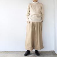 フロントのバイヤスプリーツが特徴のワイドフレアキュロットパンツ。