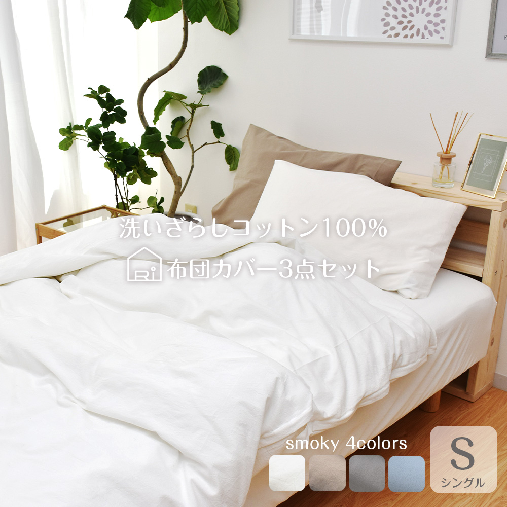 | 掛け布団カバー+BOXシーツ+ピローケースの今すぐ使えるシングル3点セット お肌にやさしい綿100% 部屋に馴染みやすいおしゃれなスモーキーカラー 洗濯機で洗濯OK(洗濯ネット使用) |