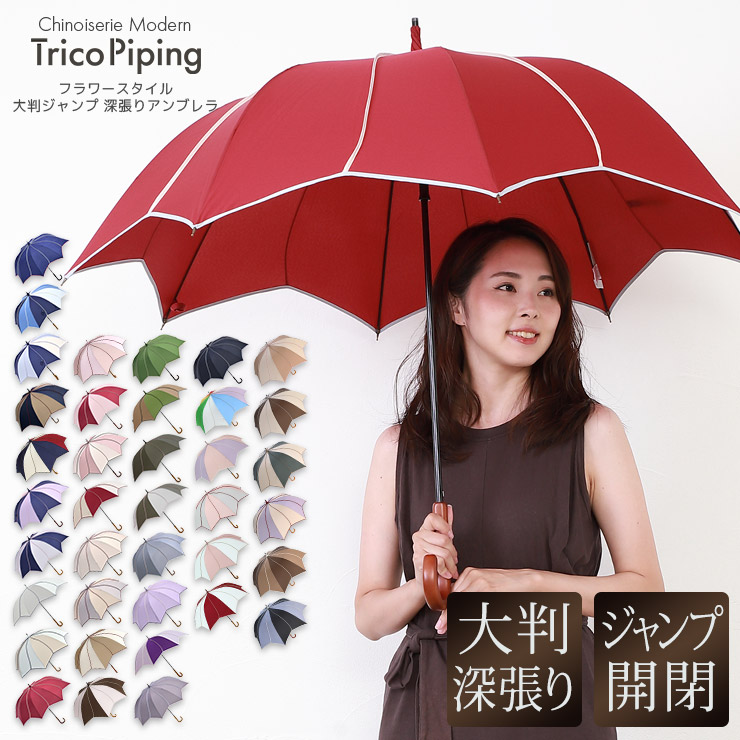 シノワズリーモダン 雨傘 レディース おしゃれ 長傘 大きめ 大判 ジャンプ傘 パイピング フラワースタイル