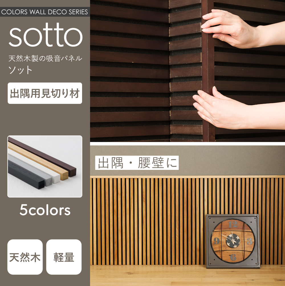 そんな悩みを解決してくれる天然木製のおしゃれで高機能な吸音パネル「sotto(ソット)」に便利な専用出隅用見切り材が登場!
