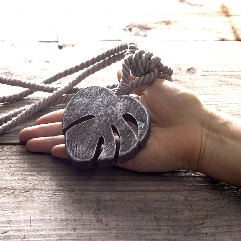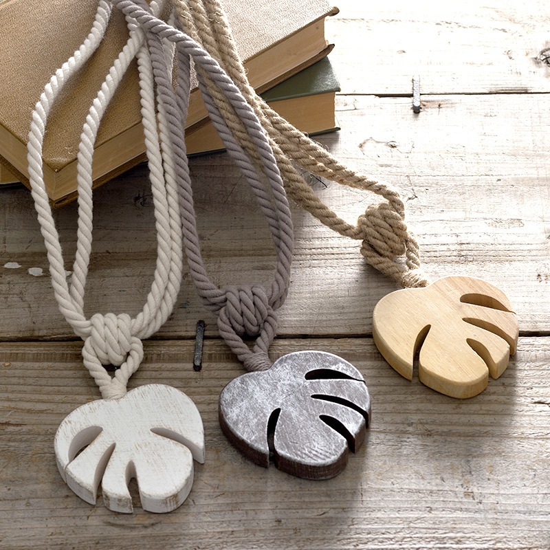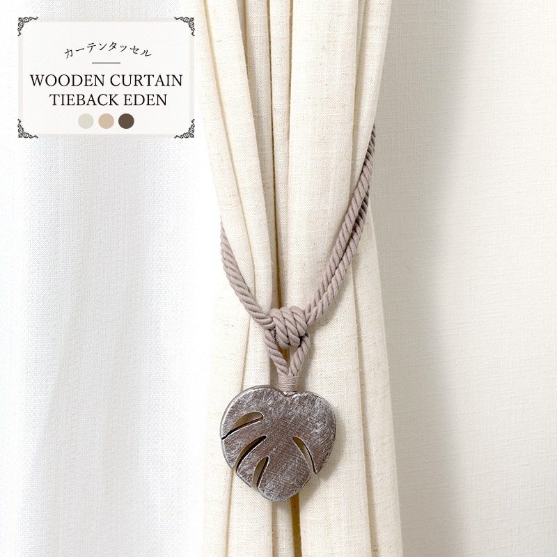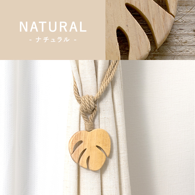 パラゴムの木で作られた椰子の葉モチーフがかわいいカーテンタッセル。