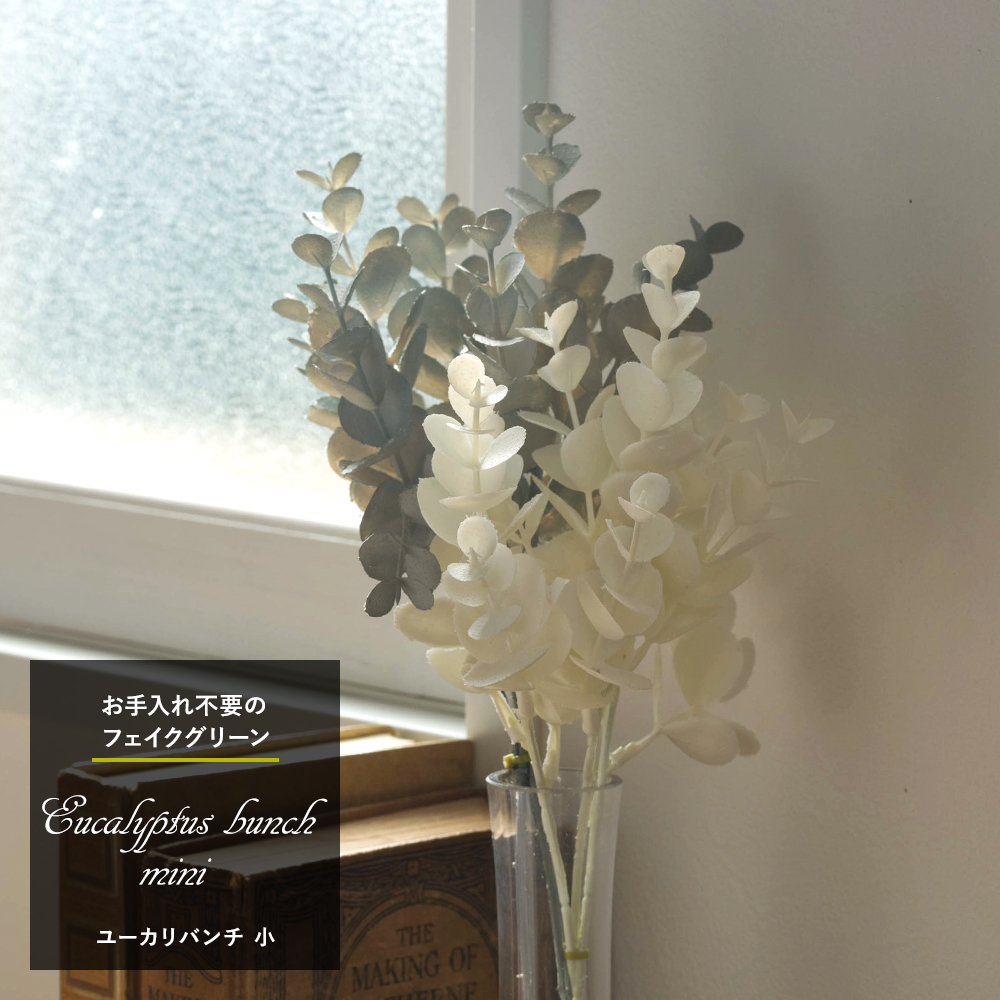 ユーカリバンチのミニサイズです。 グレーがかったグリーンと、ホワイトの2色。 北欧インテリアやフェミニンなお部屋にオススメです。 |