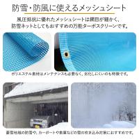 風圧抵抗に優れたメッシュシートは網目が細かく、防雪ネットとしてもおすすめの万能ターポスクリーンです。ポリエステル素材はメンテナンスも必要なく、劣化しにくいのも特徴です。