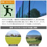 グラウンドや学校の運動場、野球場などの防球に最適な防球ネット。ゴミ置き場の鳥・猫よけ、店舗などでの防犯・人よけなど、幅広く使用できる汎用ネットです。