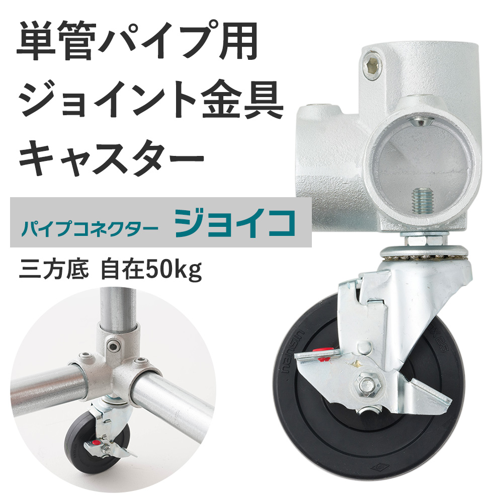 | 単管パイプ用自在型コーナーキャスター。 重量物でもロック付きで使いやすいタイプです。 サイズにより耐荷重が異なりますので製作物に合わせてお選びください。 屋外でご使用の場合はローバル等での錆止め加工を行ってください。 ■屋外OK!錆びにくい単管パイプ用ジョイント金具 従来の交差クランプタイプの金具と違い、ぴったりのサイズで組み立てができ、サイズ計算も簡単!重なりの余分がなくスマートで省スペースです。 パイプと金具接続時の引張強度が578kg(※参考値)もあるので、クランプタイプの1000kgには劣りますが、人が乗るものや小屋など重量物の製作には充分な強度。 単管パイプなので、Φ20〜38cmの通常の丸パイプでは強度が足りずできなかった人が乗るものや小屋や屋根、階段など大きなものでも作ることができるのが大きな魅力です。 ■DIY例 屋外の小屋、倉庫、階段、柵、屋根、フェンス、デッキ土台、日よけ枠、タープ台、自転車置き場、ひっかける自転車台、パーゴラ、ガーデニング台、棚、屋外用テーブル・椅子・ベンチ、看板枠、ビニールカーテンやターポリンの枠、ジャングルジム、滑り台などの遊具、雲梯、ハンモック枠、健康器具、風力発電、太陽光発電、バスケットゴール、サッカーゴール、大型犬のドッグハウスなどなど →単管パイプ一覧はこちら →単管パイプ用ジョイント金具一覧はこちら |