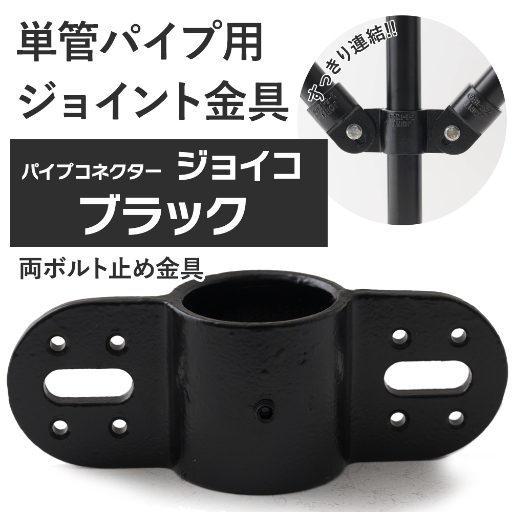 | 板など木材や金属板などの取り付けに使う両ボルト止め金具 中間用タイプ。 お好きな方向でご使用ください。 ■屋外OK!錆びにくい単管パイプ用ジョイント金具 従来の交差クランプタイプの金具と違い、ぴったりのサイズで組み立てができ、サイズ計算も簡単!重なりの余分がなくスマートで省スペースです。 パイプと金具接続時の引張強度が578kg(※参考値)もあるので、クランプタイプの1000kgには劣りますが、人が乗るものや小屋など重量物の製作には充分な強度。 単管パイプなので、Φ20〜38cmの通常の丸パイプでは強度が足りずできなかった人が乗るものや小屋や屋根、階段など大きなものでも作ることができるのが大きな魅力です。 ■DIY例 屋外の小屋、倉庫、階段、柵、屋根、フェンス、デッキ土台、日よけ枠、タープ台、自転車置き場、ひっかける自転車台、パーゴラ、ガーデニング台、棚、屋外用テーブル・椅子・ベンチ、看板枠、ビニールカーテンやターポリンの枠、ジャングルジム、滑り台などの遊具、雲梯、ハンモック枠、健康器具、風力発電、太陽光発電、バスケットゴール、サッカーゴール、大型犬のドッグハウスなどなど こちらはオリジナルで粉体塗装を施したブラックカラー。 メッキの上から塗装を重ねているのでさらに錆に強い! 単管パイプもブラックをご用意いたしましたので単管パイプとは思えないかっこいいDIY作品ができます。 シルバーカラーは別ページで販売中です。 →シルバーカラーはこちら →単管パイプ一覧はこちら →単管パイプ用ジョイント金具一覧はこちら |