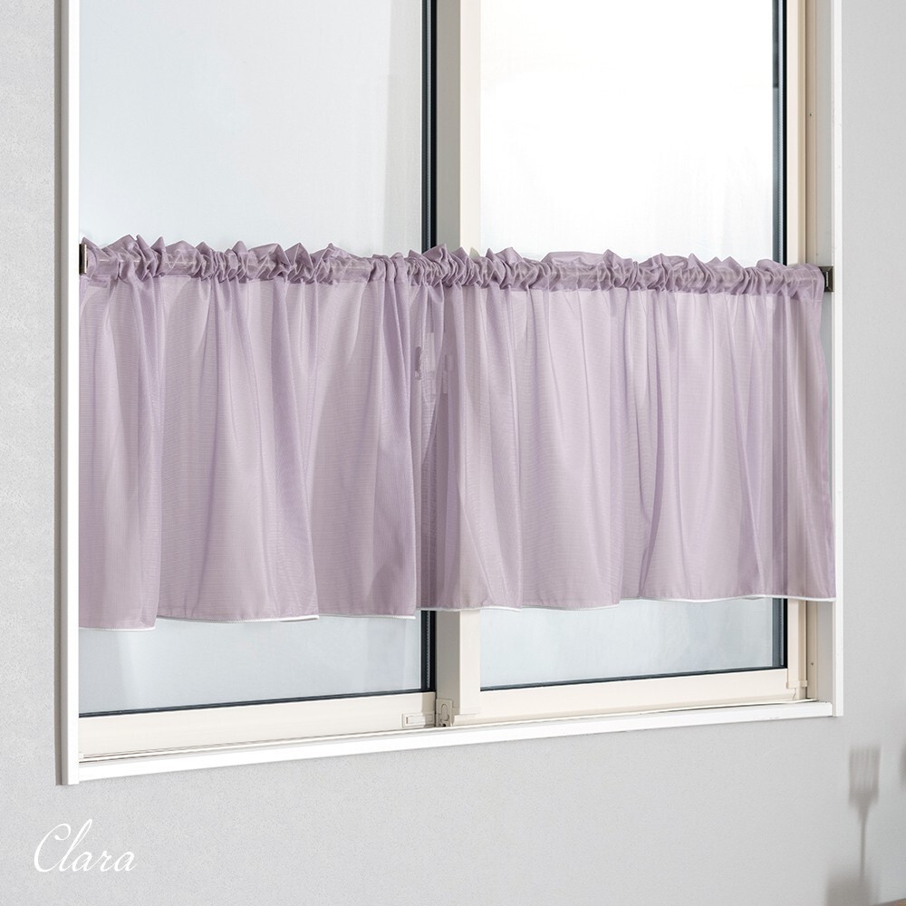 レースカーテン,カフェカーテン,クララ,Clara,RB466,透ける,外が見える,通気性,防炎,燃えにくい,光触媒,消臭,ニオイ,汚れにくい,ペット,犬,猫,ペット臭,介護,子供部屋,病院,介護,施設,エステ,サロン,美容室,お店,店舗,リビング,キッチン,ダイニング,トイレ,洗面所,寝室,窓,小窓,トリコット,グレージュ,スモーキーパープル,スカイグレー,ブルーグレー,ホワイト,かわいい,ニュアンスカラー,くすみカラー