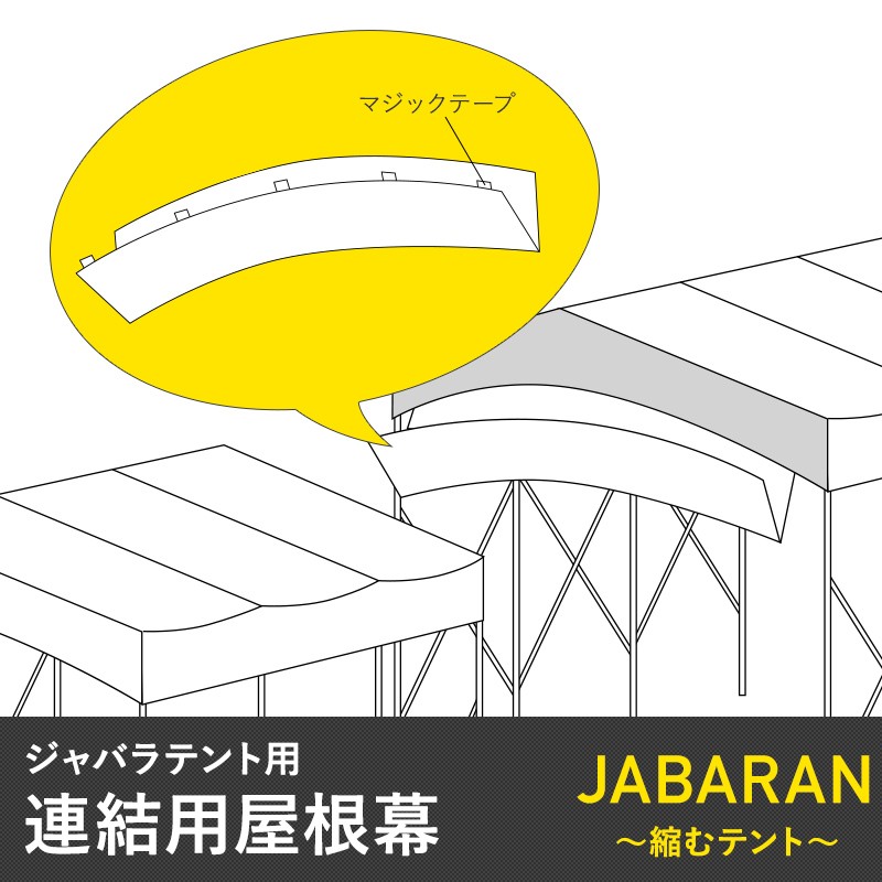 | ■アルミフレーム製 ジャバラテント180用 連結用屋根幕(カラー:クリアホワイト) 連結用屋根幕は、組み立てた状態の本体2台を連結させるときに取付るものであり、必要枚数を用意すれば何台でも連結可能になります。 屋根裏幕の「妻面」同士を挟み込んで連結させます。 |
