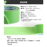 ガラス飛散防止 剥がせる 養生テープ 家具 固定 マスキングテープ わさびちゃん 緑 低臭 子供・ペットに安心 低VOC 50mm 25m 10個セット H-N-0