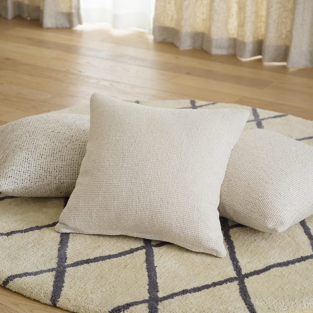 ベースのホワイトの糸に加え、落ち着いた色味の糸が織り込まれた生地。ふっくらとした太めの糸を使用することでボリューム感たっぷりで肌触りの良い仕上がりに。ホテルライクなどのモダンなインテリア空間に調和し、寝室やリビングなどゆったりと過ごしたい場所にぴったりです。グレー・ベージュ・ブラックの3つのカラーはどれもシンプルで使いやすく男女問わずお使いいただけます。