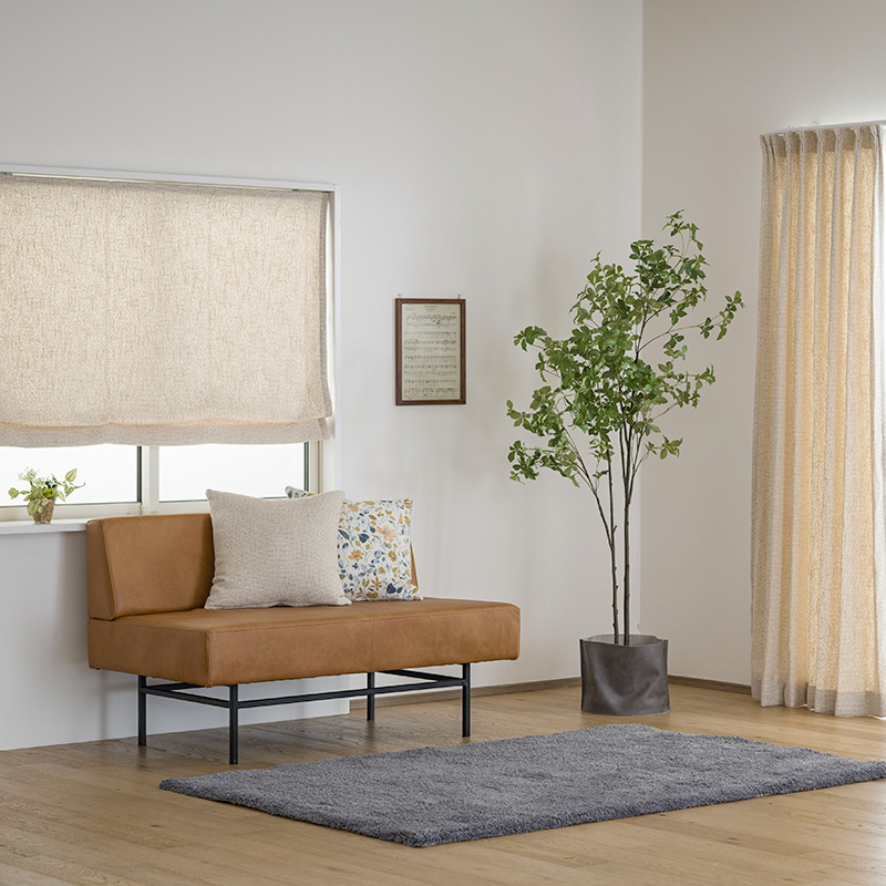 カーテン、小窓用カーテンなど窓に合わせて色んなタイプに対応できます。クッションカバーも同じ生地で揃えることができるので、合わせたコーディネートで統一感のあるお部屋に。