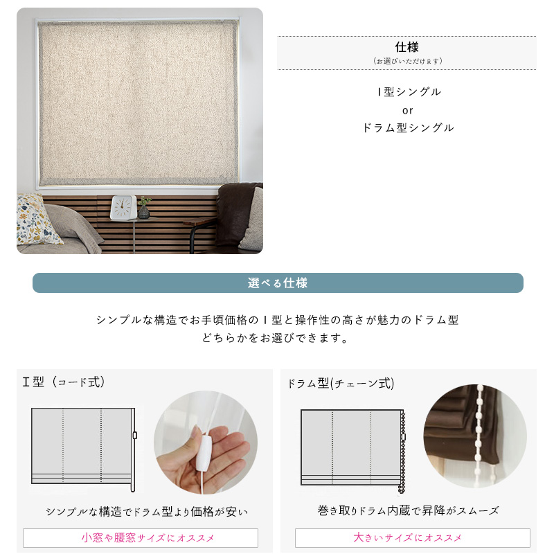 ローマンシェード サイズオーダー I型シングル 幅51〜90cm 丈50〜100cm YH8019ギュル 冬 ふわもこ 冷気対策 厚手 あったか OKC5
