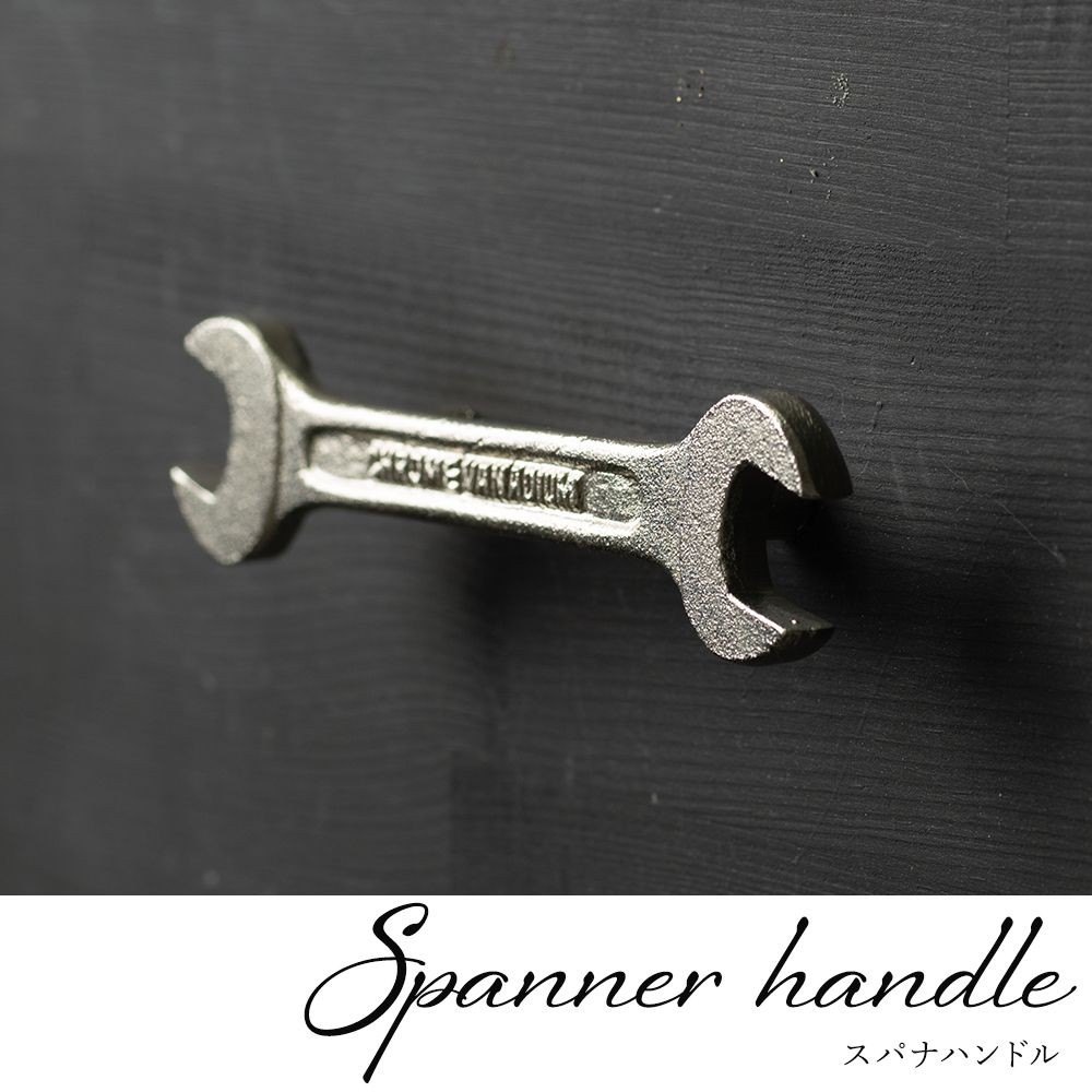 | 日常生活の中のさりげないアクセントになるようなアイアン雑貨。 シンプルな取っ手やハンドルなど、DIY初心者でも扱いやすいアイテムをセレクトしました。 メタリックなスパナがそのまま取っ手になったユニークなデザイン。 どんな引き出しや箱もこのハンドルに付け替えればおしゃれな工具入れに。 ※スパナとして実際にご使用することはできませんのでご注意ください。 |