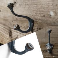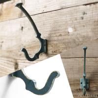 コートや帽子をかけるのに便利なダブルフック。ブルーグレーにゴールドでアンティーク塗装したおしゃれなウォールフックです。