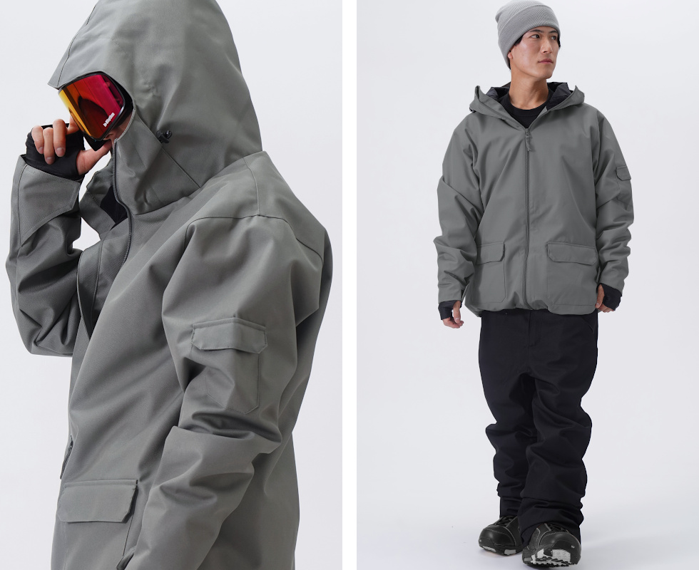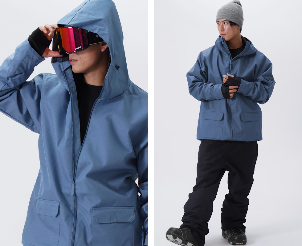 【素材】耐水圧:13,000mm以上を備えた機能素材。雪等の染み込みも安心。透湿:1,080g/m2/24h。
