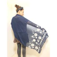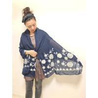 白糸の花刺繍がノーブル&リュクスな印象の大判ストール☆