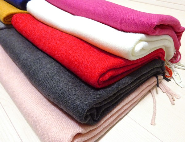 デイリーに取り入れやすいマストアイテムの無地ストール。大判サイズなのでマフラーとしてはもちろんのこと、ショール風に肩にかけても使えます。